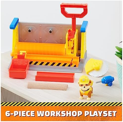 COLLECTIBLE TOY FIGURE: Parents and kids can imagine teaming up with their favorite PAW Patrol Pup, Rubble, in the Bark Yard Workshop Playset, while creating imaginative building projects together!