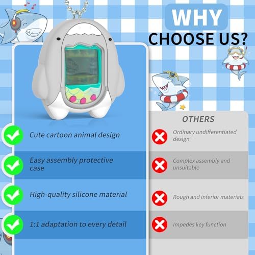 💙【Unique Design】Stand out from the crowd with the exquisite pattern design of this Tamagotchi Original case. Add a touch of uniqueness to your Tamagotchi Original with this cute shark silicone case.