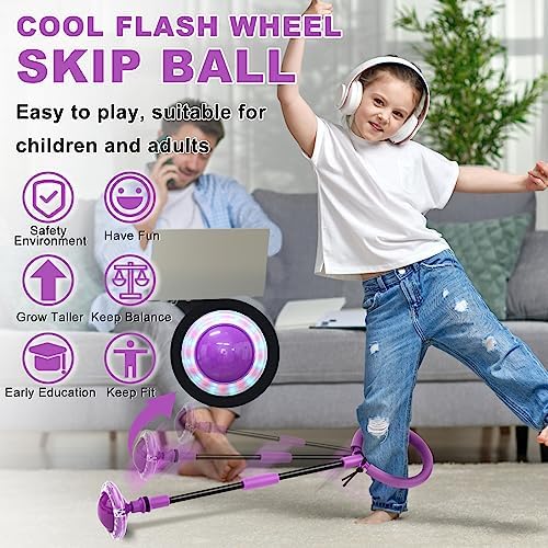 COOL AUTOMATIC FLASH WHEEL: Our skip ball is very popular with kids because it has cool colorful lights built in. When it rotates in motion, it automatically emits a cool colorful light show using the power of electromagnetic induction. No extra batteries or charging required.