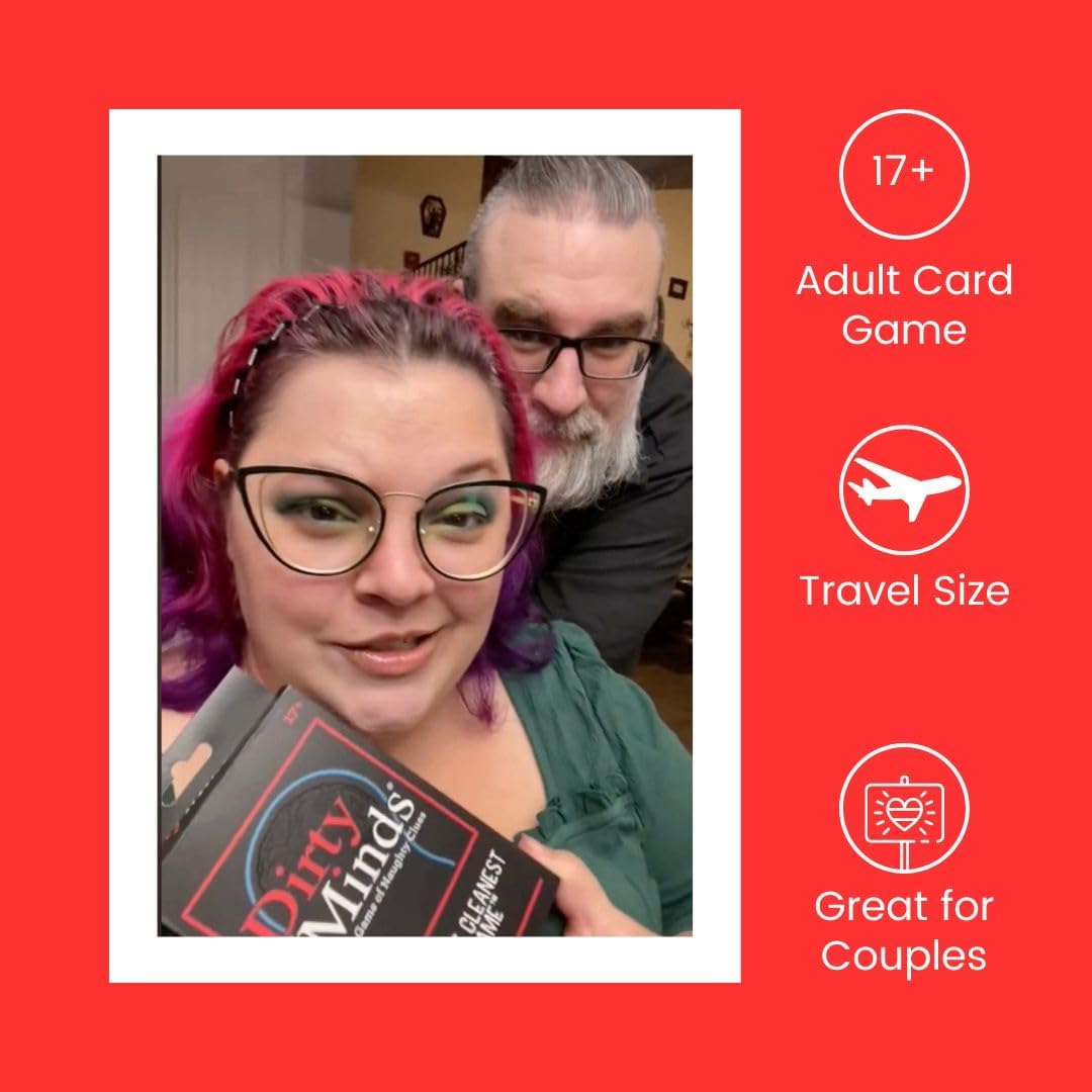 DIRTY MINDS: The world’s cleanest dirty game. Set includes 112 total cards in a convenient travel pack. 56 game cards (5 naughty clues and one clean answer per card) plus 56 scoring cards.