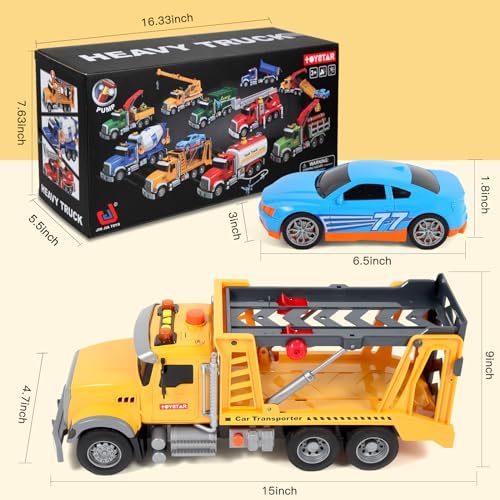 【Big Tow Truck Toy with Race Car Toy】 The toy trucks set contain 1 x 15″ big tow truck toy, 1 x 6.5″ racing toy car. The tow truck toys will bring lots of joy and surprise to the children! Happy toys & games time for 3 4 5 6 7 year olds boys girls. With easy-to-use controls, they can tow and transport cargo just like real-life truck drivers.
